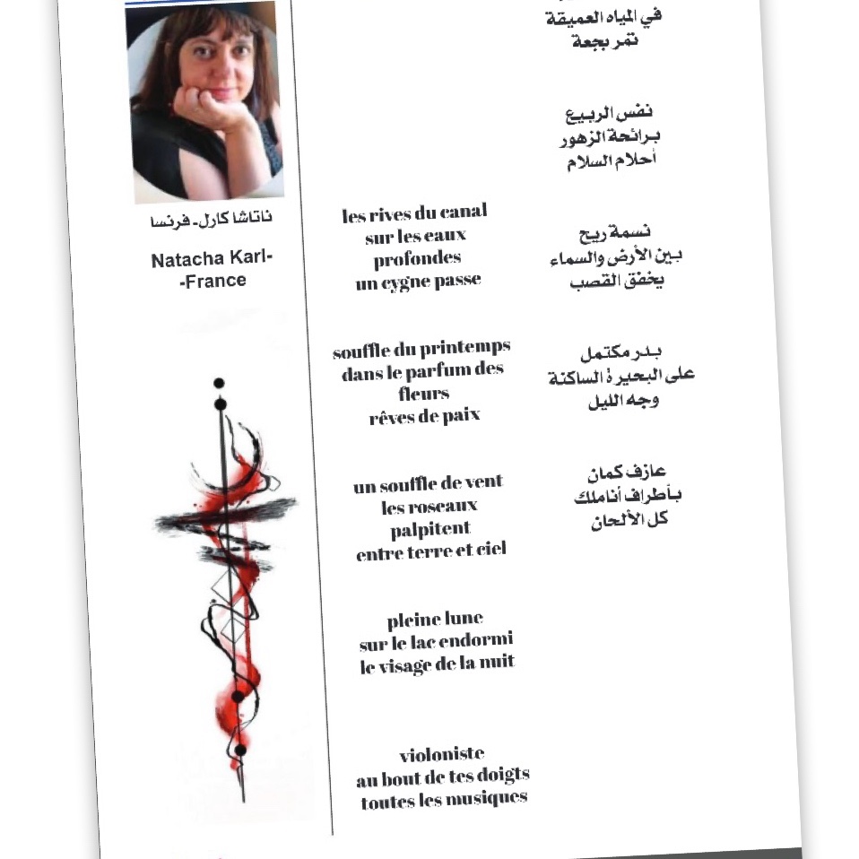 Je remercie Mohammed Benfares de permettre à mes mots de se lire et s’écrire dans la belle calligraphie de la langue arabe, avec 104 haïjin.es du monde entier.